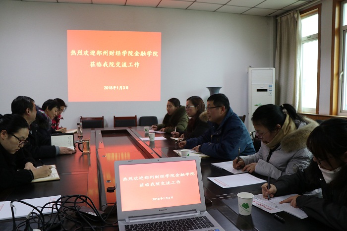 1月3日下午,郑州财经学院互联网金融学院书记杨贵仓一行5人来kaiyun体育官网考察交流,党总支书记胡红林、副院长王培玲、保险教研室主任夏秀梅、投资学教研室主任邓瑜参加了座谈交流。