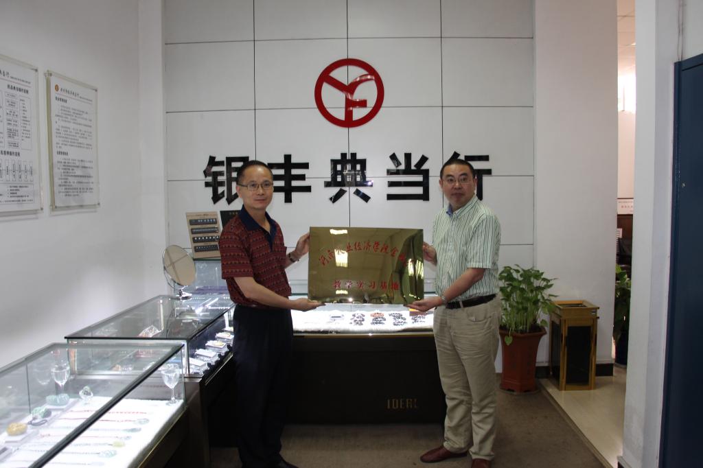 随后,郑州市银丰典当行与金融系互赠了基地牌匾,双方参加仪式成员合影留念。