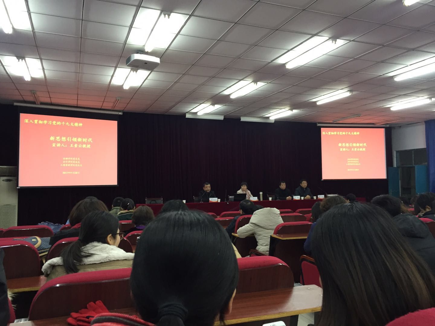 11月30日下午,马克思主义学院院长、学校学习贯彻党的十九大精神宣讲团成员王素云教授,在英才校区E109教室,为工商管理学院党总支、金融学院党总支、会计学院党总支全体教职工作十九大精神宣讲报告。报告会由金融学院党总支书记胡红林主持。