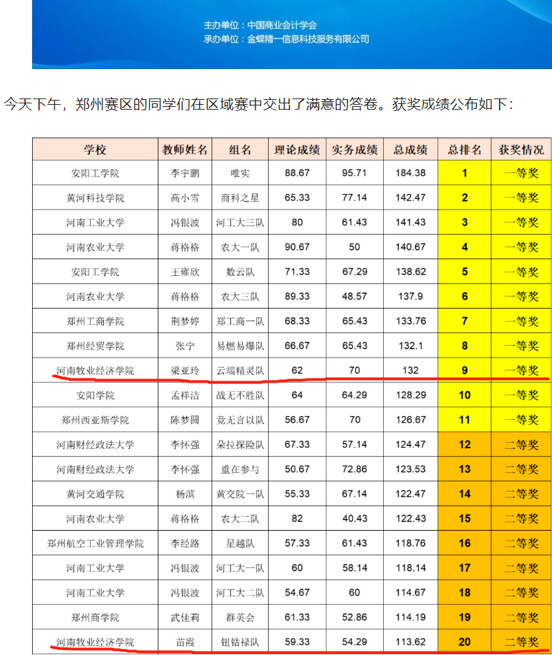 在kaiyun体育网页登录入口领导的科学规划和有序指导下,学院组织精选辅导老师组成比赛导师团队,迅速响应并发布比赛选拔通知,同学们报名踊跃,最终择优200多人参加校赛。同学们克服重重困难,积极参加理论知识学习和实训操作,提高了学科理论水平和实务能力。历经前期三个多月的辛苦备战和激烈的校赛选拔,在2022年12月6日的河南省区域赛角逐中,kaiyun体育官网代表队成绩优异,云端精灵队、钮钴禄队、米奇妙妙队分别荣获河南省比赛一、二、三等奖,获得一等奖的云端精灵队将代表kaiyun体育官网和河南省参加全国比赛!希望kaiyun体育官网选手再接再厉,争取在国赛中也能取得好成绩。