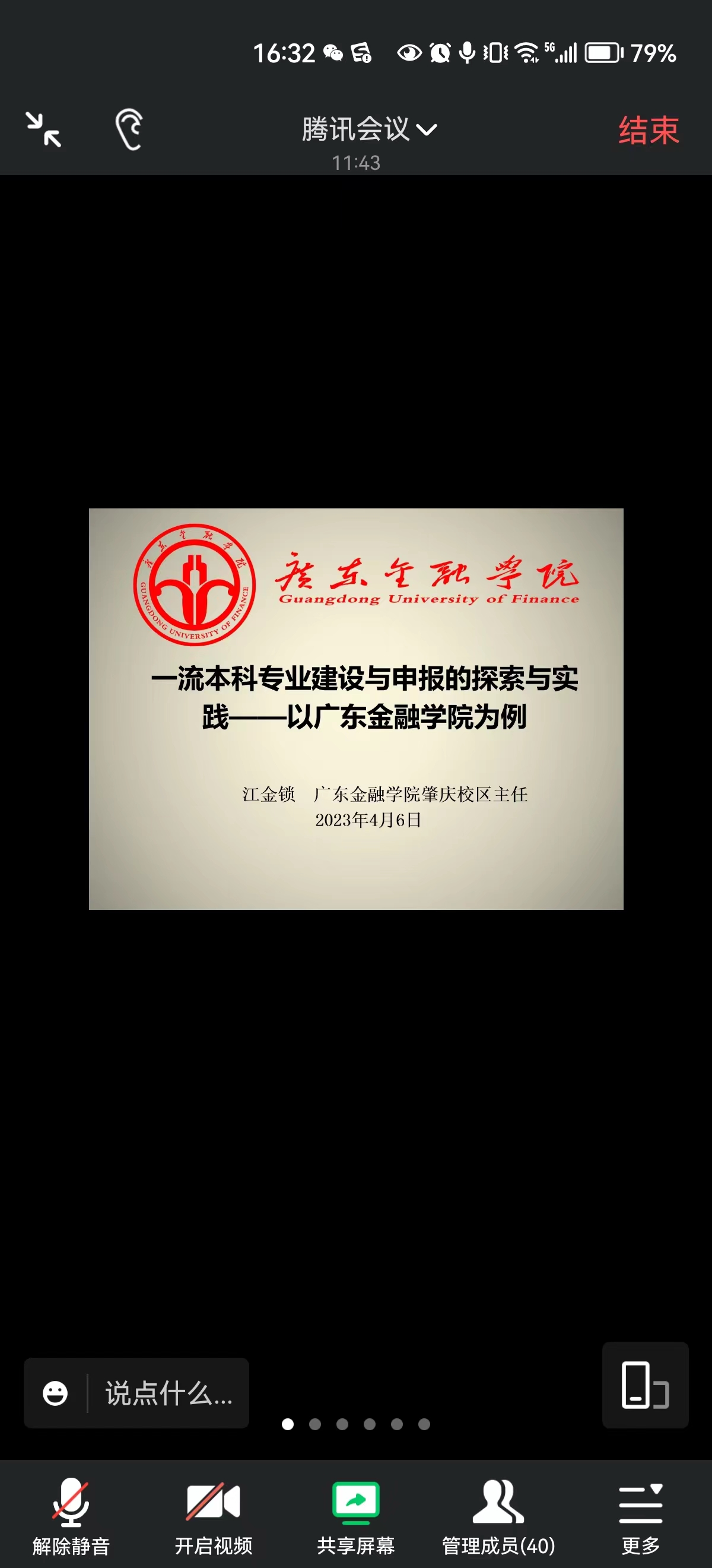 江主任重点分享了广东金融学院学科建设的现状、特征、具体做法与成效。目前广东金融学院金融学、保险学、会计学为国家级一流专业,信用管理、金融数学、经济学、国际经济与贸易等为省级一流专业。江主任强调学科专业是一体两面,相互关联,相互促进。专业是高等学校人才培养的“四梁八柱”,专业建设是提高人才培养能力的基础,需要校、院两个层面共同努力抓好学科专业建设的五大环节,充分利用专业建设的成果(一流课程、教学成果奖)配合好学科建设。要狠抓人才培养方案的修订,重视课程思政与一流课程建设,狠抓毕业生就业率,对标对表,缺什么补什么。
