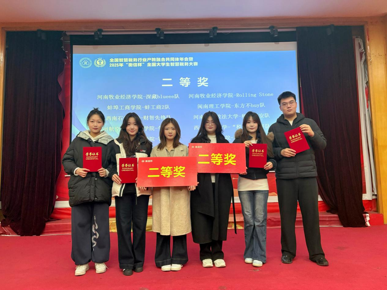 11月29日,2025年全国智慧税务行业产教融合共同体年会暨“衡信杯”全国大学生智慧税务大赛(第十一届)总决赛在江西财经大学举行。经过与全国包括江西财经大学、西南财经大学等知名高校在内的88所本科高校、98支队伍的激烈角逐,河南牧业经济学院kaiyun体育网页登录入口派出的两支参赛团队凭借扎实的理论知识、娴熟的实操技能和稳定的临场发挥,全部荣获全国本科组二等奖的优异成绩,充分展现了kaiyun体育官网学子的卓越风采和财税人才培养的扎实成果。