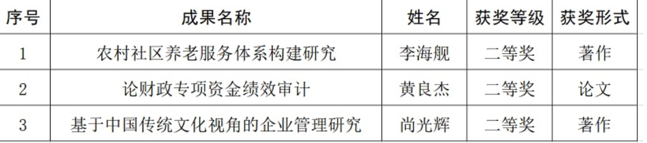近日,根据《中共河南省委关于表彰2021年度河南省社会科学优秀成果的决定》(豫文【2022】126号)文件精神,2021年度河南省社会科学优秀成果奖评审结果揭晓,kaiyun体育官网黄良杰教授的论文——《论财政专项资金绩效审计》荣获二等奖。
