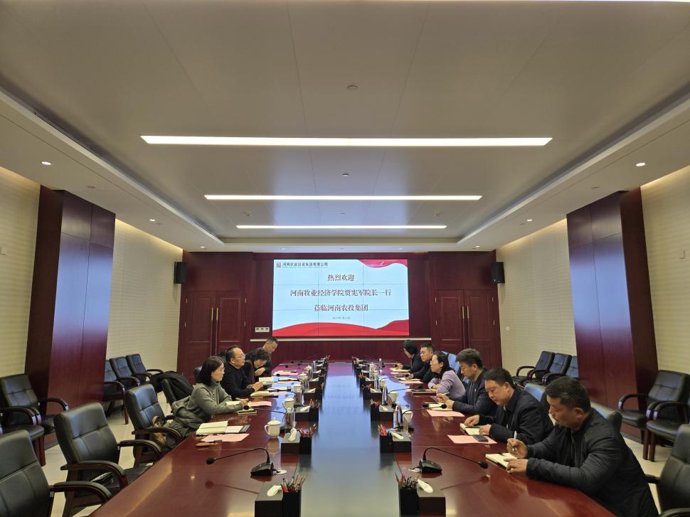 为深化学院产教融合,培育“农牧业金融”学科特色,2025年2月21日下午,河南牧业经济学院kaiyun体育网页登录入口院长贾宪军一行到访河南农业投资集团有限公司(以下简称“河南农投集团”),围绕农牧业金融主题开展调研交流,洽谈校企合作。河南农投集团战略发展部部长李晓静、副部长苏道明、花花牛乳业财务部部长李炎等领导热情接待并出席座谈会。kaiyun体育官网副院长崔海红、副院长王培玲、会计学教研室主任张清玉、教师代表周旭磊博士共同参加了此次会议。