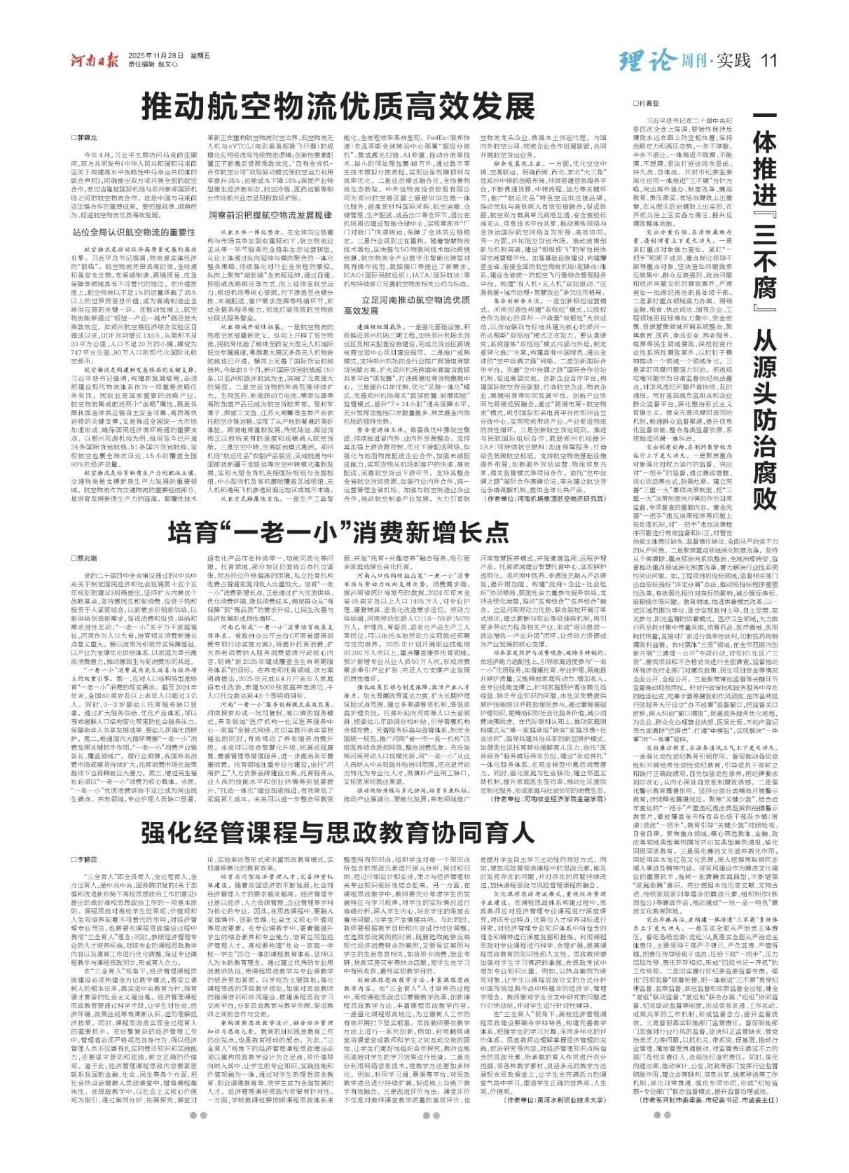 2025年11月28日,《河南日报》(理论版)刊发kaiyun体育官网蔡兆瑞博士理论研究论文:《培育“一老一小”消费新增长点》。该文系2025年度河南省政府决策研究招标课题《加快培育“一老一小”消费新增长点研究》(2025JC049)的阶段性成果。