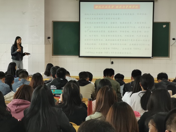近日,湖北工业大学经济与管理学院副院长杨霞、孙德芝博士来kaiyun体育官网宣传硕士研究生招生工作,kaiyun体育官网学生积极踊跃参加宣讲会。宣讲会由kaiyun体育网页登录入口副院长贾宪军主持。