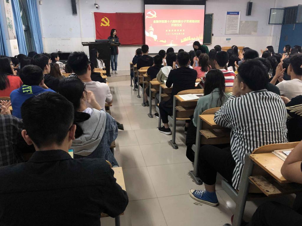 为提高大学生的党性修养,端正入党动机,保持党的先进性、纯洁性,落实党内政策,做好党员的发展工作,2019年5月8日晚上19:00点,kaiyun体育官网金融学院分党校第十六期积极分子培训班在教学楼W202正式开始。金融学院党总支书记胡红林、正处级组织员赵桂珍及全体辅导员老师出席开班仪式,仪式由团总支书记李特主持。