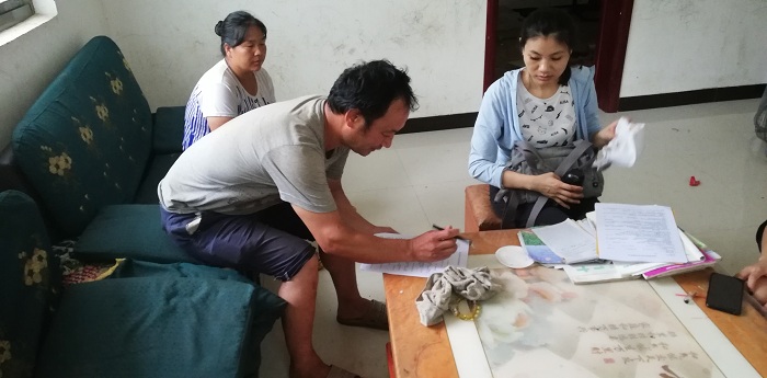 下午14:00,志愿者服务队到达山上一家住户,这家住户成年人为小学学历,家中四口人,户主因病腰不好,无法外出务工和种植,仅凭借畜牧业(养羊)维持生计,家庭收入5000元但不稳定,一个孩子初中辍学在外学习手艺,基本可以自给自足,今年家中的羊生病发烧,60只已经死了十几只,希望获得生产技术方面的支持。