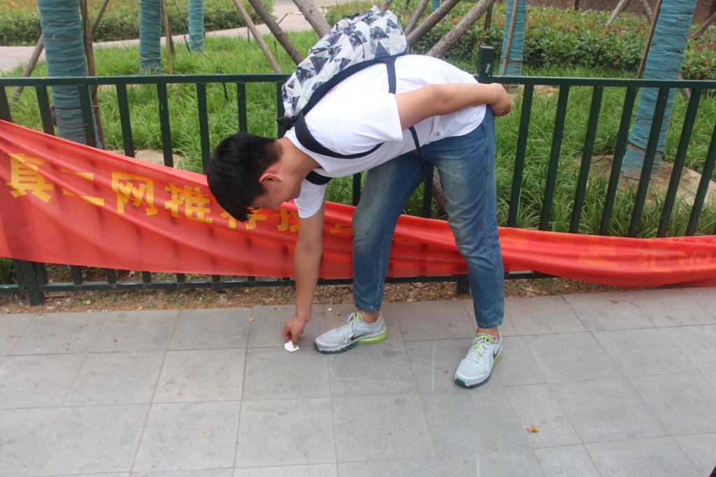 捡拾垃圾的志愿者
