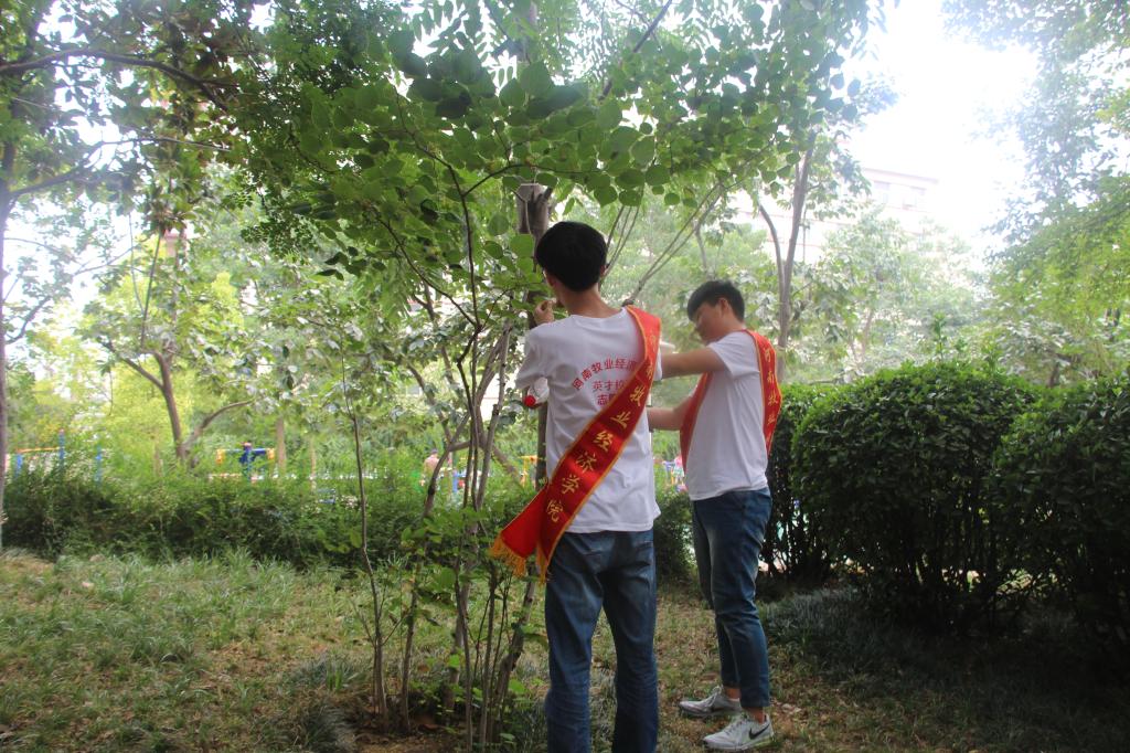 到达上街区后,已经接近上午十点钟,志愿者们稍作休息调整之时,讨论今天的具体活动路线和内容。为了能让今天的的社会实践活动开展的更有效率,小分队依然分为两个小组进入不同的社区。相比之下,上街区社区居民人口密度较低,根据实际情况,志愿者们在照常开展问卷调查和金融知识宣传的同时,帮助居民们打扫社区卫生,整理社区花草。由于没有随身携带卫生工具,志愿者们徒手捡拾垃圾,把青年服务社会、服务群众的志愿精神广泛传播。