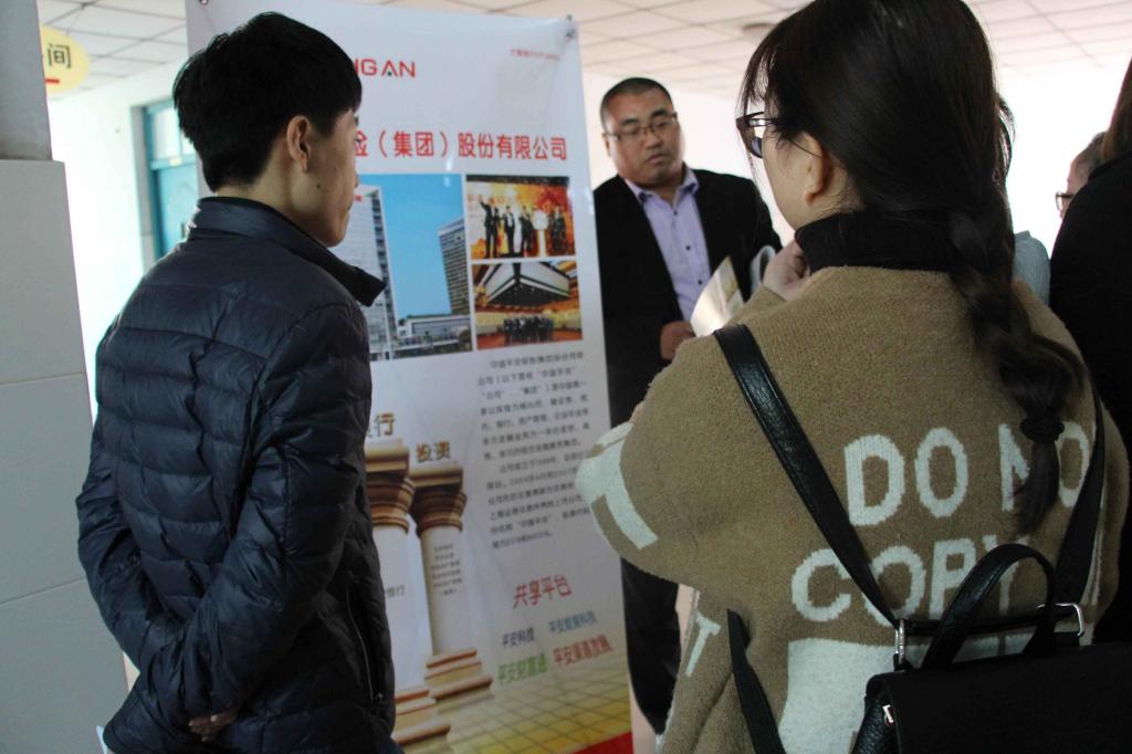 为了更好地拓宽毕业生就业渠道,2016年 11月10日,金融学院在教学楼B楼3楼举办毕业生双向选择招聘会。参会企业有浙商证券、九州证券、中国人寿、中华联合保险公司和郑州市银丰典当有限公司、百合国际投资公司等三十多家企业。共有300多位毕业生参加了本次招聘会。